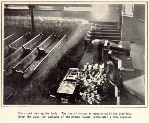 “At 3 o’clock the immediate family seated themselves in front of the coffin. Rev. Dr. Henry Van Dyke of Princeton and Rev. Joseph H. Twitchell of Hartford, Twain’s old chums, robed in their vestments, took their places in the chancel. For a quarter of an hour the two ministers sat silent, their heads bowed in prayer.